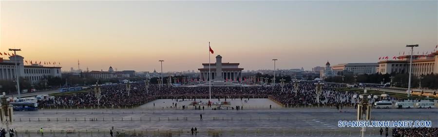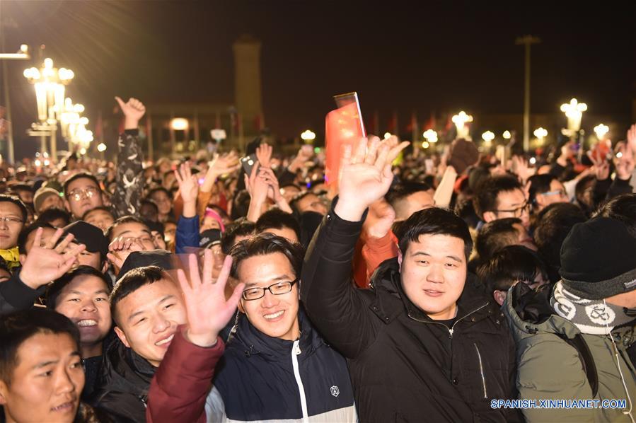Más de 90.000 visitantes se reunieron en la plaza pese al frío clima de invierno para ser testigos de la ceremonia. Los asistentes presenciaron cómo la bandera nacional fue izada en el centro de la capital china el primer día de 2018, tras haber esperado durante varias horas.