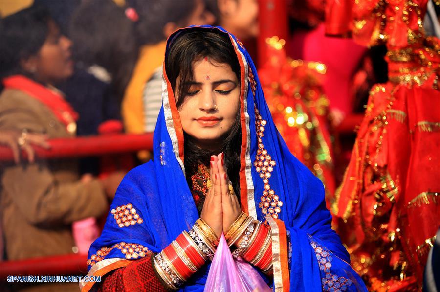JAMMU, enero 2, 2018 (Xinhua) -- Imagen del 1 de enero de 2018 de una devota hindú ofreciendo oraciones en el primer día del A?o Nuevo 2018 en un templo en Jammu, Cachemira administrada parcialmente por India. (Xinhua/Str)