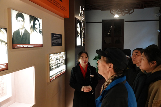 Los visitantes observan antiguas fotografías en la sala de exposiciones de la antigua residencia del expresidente Mao Zedong en Shanghai. [Foto: chinadaily. com. cn]