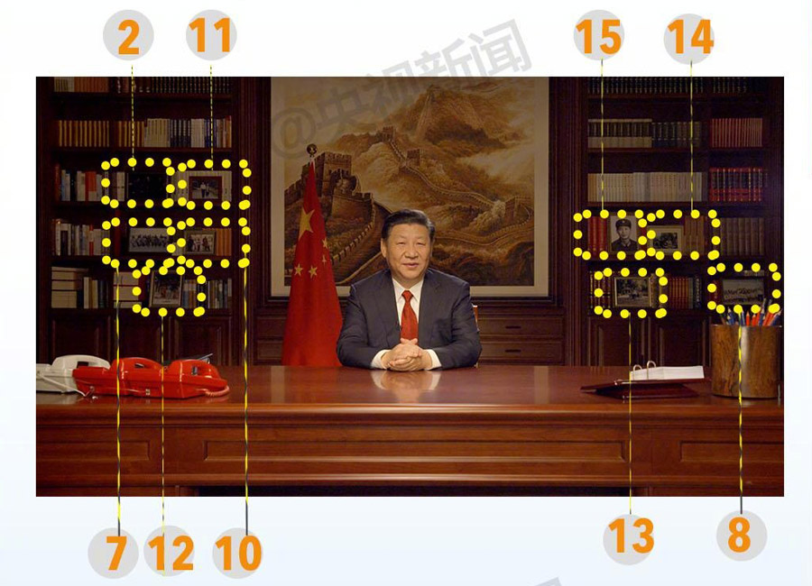 Dentro de los libreros del presidente Xi hay un total de 15 fotos. Si observas con detenimiento, apreciarás que 9 imágenes aparecen por primera vez.