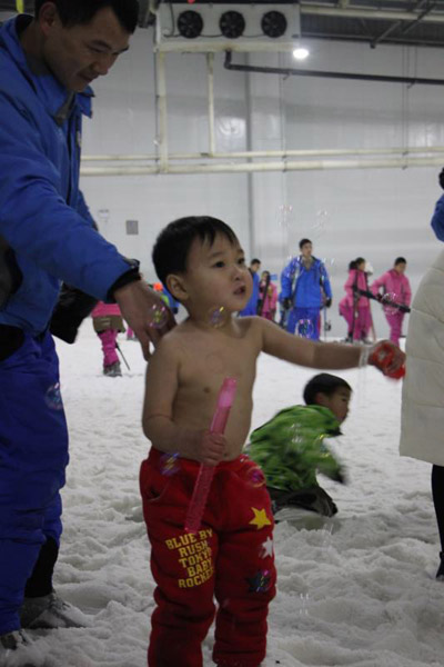 He Huifan, de 3 a?os y natural de Changsha, provincia de Hunan, se hizo famoso por jugar con mu?ecos de nieve a pecho descubierto. La temperatura en el museo de nieve era de -6 grados centígrados. Su abuelo dijo que el ni?o nunca había temido al frío. Desde que tenía un a?o, nunca ha usado ropa de abrigo en invierno y solo se ha resfriado una vez. [Foto de Zi Xiaosong / chinadaily.com.cn]