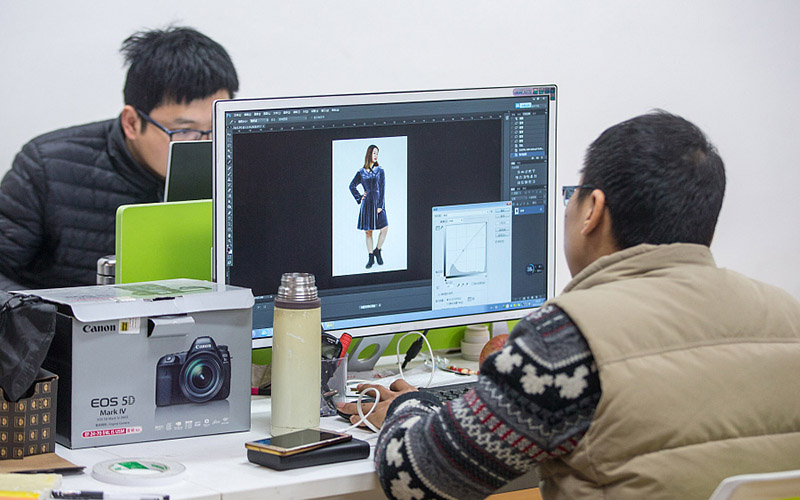 Un fotógrafo edita la foto de una modelo de talla grande en Hangzhou, provincia de Zhejiang, el 28 de diciembre de 2017. [Foto / VCG]