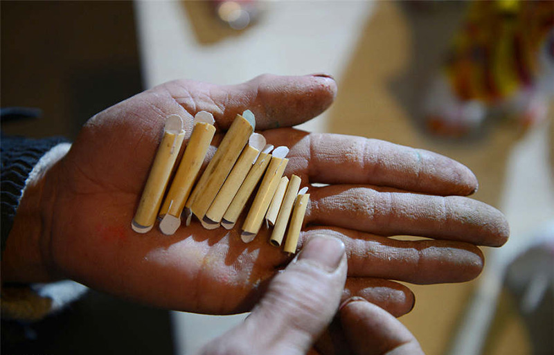 Las ca?as para los silbatos de arcilla pintada se hacen con junco. [Foto: IC]