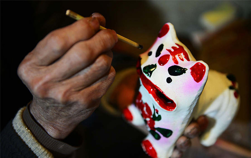 Wei Zhaozhong aplica colores a una escultura de arcilla en su casa de Rizhao, provincia de Shandong, 3 de enero del 2018. [Foto: IC]