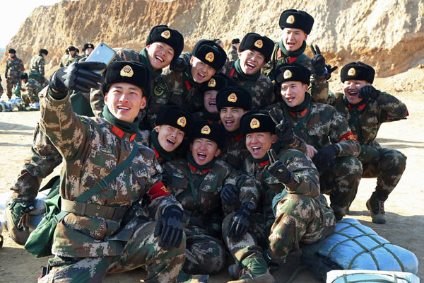 Reclutas nacidos con el milenio posan para una foto de grupo durante un ejercicio de entrenamiento de campo en la provincia Liaoning, 9 de diciembre del 2017. [Foto: IC]