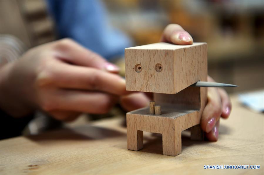 Imagen del 9 de enero de 2018 de Song Lele fabricando artesanías de madera en su taller, en Lanzhou, provincia de Gansu, en el noroeste de China. Song Lele, una joven de 23 a?os de edad, eligió iniciar su propio negocio en vez de hacer la educación preescolar, su especialidad de grado. "La decisión fue tomada luego de una cuidadosa consideración, que se basaba en mi afición desde la infancia", dijo Song. Después de graduarse, Song Lele viajó a varias ciudades para aprender las habilidades de la fabricación de artesanías de madera e inició su taller ya de regreso en su ciudad natal, Lanzhou. Las personas pueden fabricar artesanías de madera bajo la instrucción de Song Lele, usando las herramientas y materiales proporcionados en el taller. Las artesanías pueden ser llevadas por los clientes una vez terminadas. Con más y más personas viniendo para experimentar lo divertido de la fabricación de artesanías, Song tiene un ingreso de cerca de 10,000 yuanes (aproximadamente 1,600 dólares estadounidenses) cada mes. Song expresó su deseo al comienzo del A?o Nuevo, "Ojalá que más personas vengan a mi taller para que podamos continuar juntos esta forma de arte". (Xinhua/Fan Peikun)