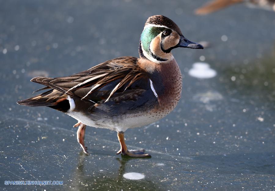 BEIJING, 11 ene (Xinhua) -- Un par de cercetas del Baikal han sido descubiertas en el Parque Beihai de Beijing, lo que ha atraído a muchos amantes de las aves a observar y tomar fotos.