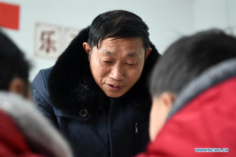 Tan Zeguang imparte una clase matinal de lectura en la escuela primaria de la aldea Gaoshan de Tonggu, del municipio de Chongqing, el 8 de enero de 2018. [Foto / Xinhua]