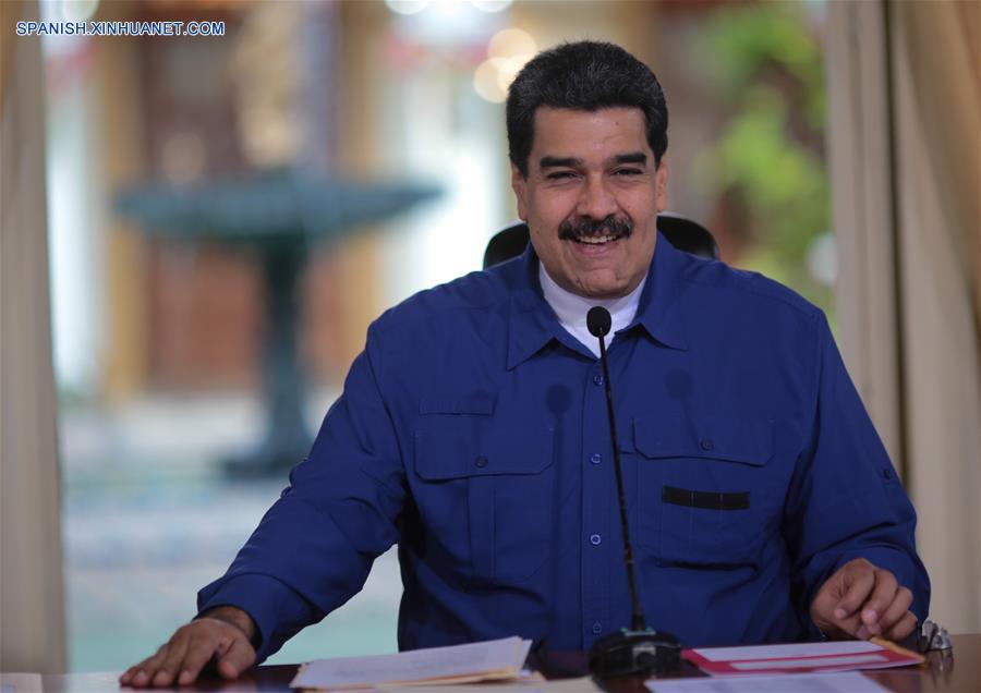 Imagen cedida por la Presidencia de Venezuela, del presidente venezolano, Nicolás Maduro, participando durante una sesión denominada "Jueves de Regiones", en Caracas, Venezuela, el 11 de enero de 2018. (Xinhua/Presidencia de Venezuela)