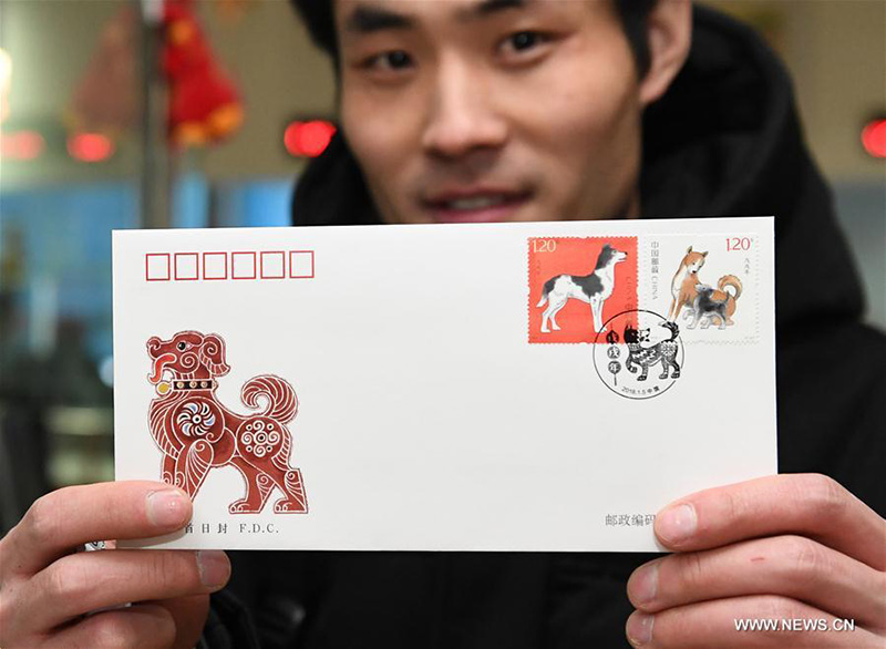 El Correo Postal de China publicó este viernes dos dise?os de estampillas especiales dedicadas al “A?o del perro”, ciclo que comienza a partir del 16 de febrero. Beijing, 5 de enero del 2018. [Foto: Xinhua]