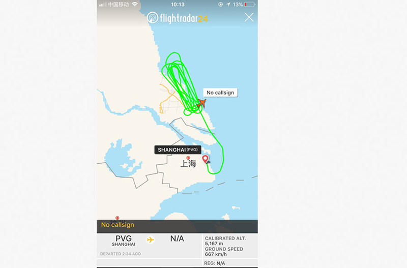 La ruta en Shanghai del primer vuelo del segundo avión chino C919, realizada el 14 de enero del 2018. [Foto: IC]