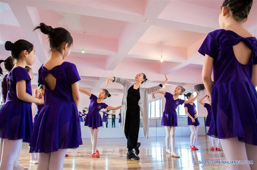 HOHHOT, enero 16, 2018 (Xinhua) -- Ni?as practican habilidades básicas de danza en un centro fuera del campus, en Hohhot, capital de la Región Autónoma de Mongolia Interior, en el norte de China, el 16 de enero de 2018. Ni?as aprenden a bailar en el centro durante sus vacaciones de invierno. (Xinhua/Ding Genhou)
