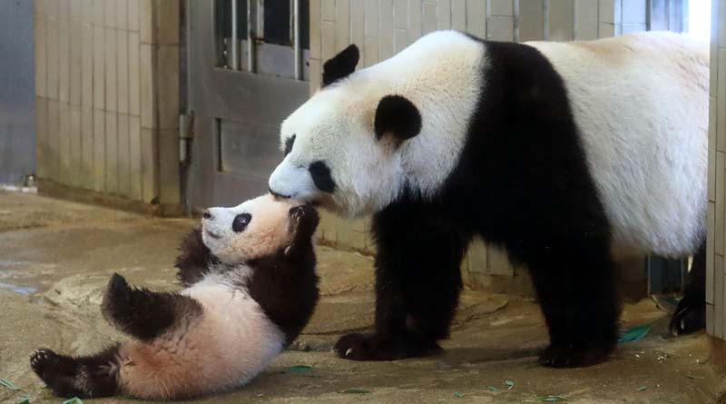 Xiang Xiang (a la izquierda) con su madre Shin Shin, en el Zoológico de Ueno, Tokio, el 10 de octubre del 2017. [Foto: IC]