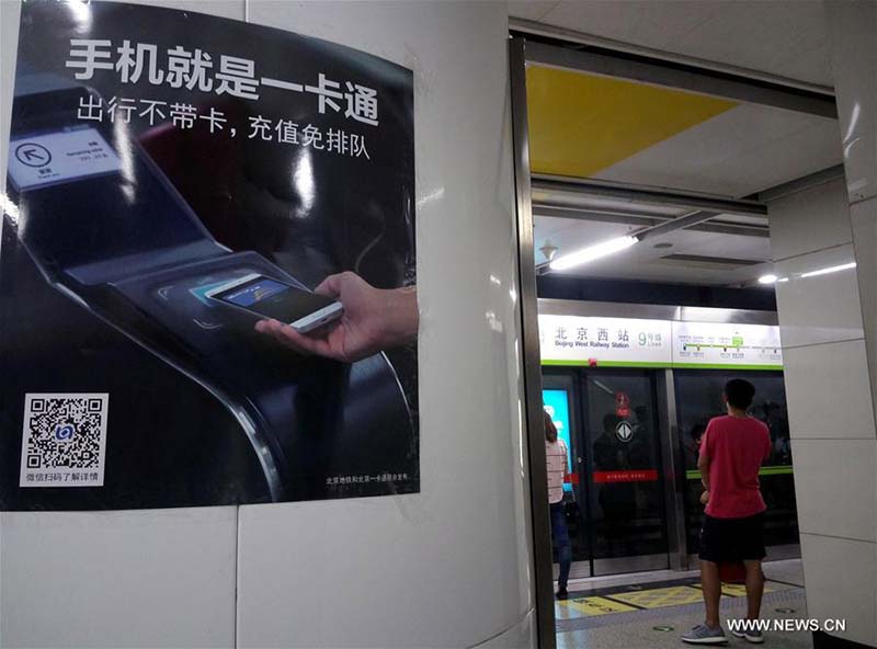 A partir de este lunes, los pasajeros del metro de Beijing podrán utilizar sus teléfonos móviles para abonar el pasaje, informaron las autoridades locales. Actualmente, los e-tickets se limitan a alrededor de 160 modelos de teléfono Android con función NFC (Near Field Communication), 14 de agosto del 2017. [Foto: Xinhua]