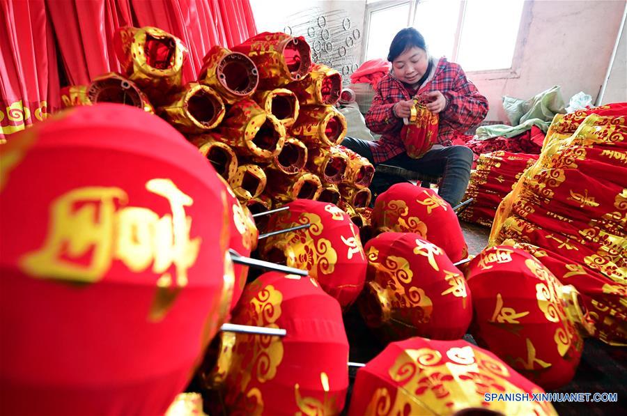 SHAANXI, enero 23, 2018 (Xinhua) -- La trabajadora Li Fang elabora linternas, en la villa de Sanzhao del distrito de Yanta en Xi'an, provincia de Shaanxi, en el noroeste de China, el 23 de enero de 2018. Los artesanos del taller de linternas local están atareados elaborando linternas previo al próximo Festival de Primavera. (Xinhua/Shao Rui)