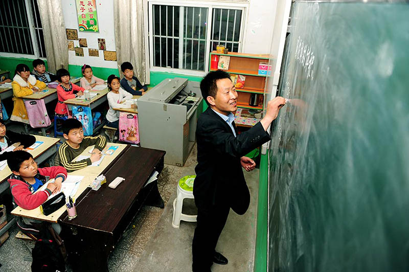 Chunpeng Guo, ense?a matemáticas en una escuela primaria en Nanyang, provincia de Henan. [Foto: Xinhua]