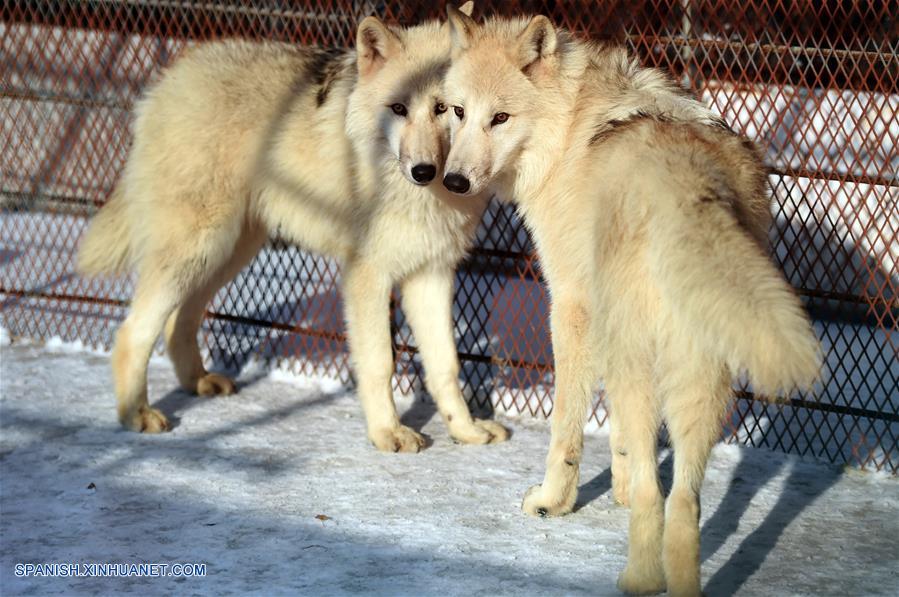 HEILONGJIANG, noviembre 22, 2017 (Xinhua) -- Lobos árticos permanecen en el parque zoológico Harbin Polarland, en Harbin, capital de la provincia de Heilongjiang, en el noreste de China, el 22 de noviembre de 2017. Cuatro lobos árticos de Siberia fueron presentados el miércoles en el parque zoológico. (Xinhua/Wang Jianwei)