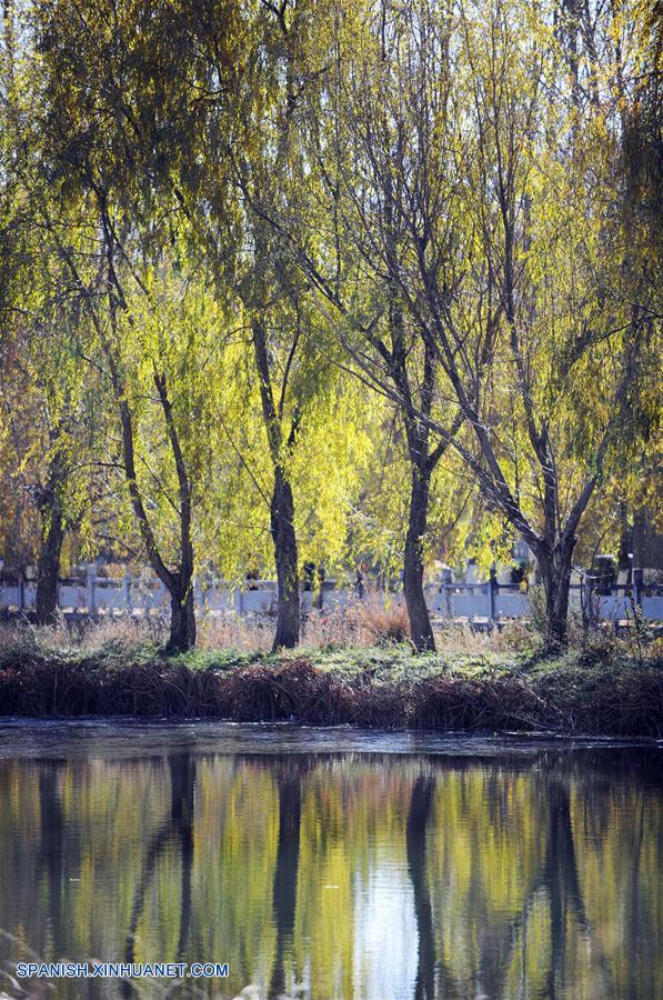 LHASA, noviembre 23, 2017 (Xinhua) -- Arboles de sauce crecen en el humedal Lalu, en Lhasa, en la región autónoma del Tíbet, en el suroeste de China, el 23 de noviembre de 2017. La reserva natural nacional del humedal Lalu, con una altitud de aproximadamente 3,600 metros, cubre un área de cerca de 13 kilómetros cuadrados. Más de 5,000 aves de más de 20 especies habitan en la reserva a lo largo del a?o. En el invierno, docenas de especies de aves migratorias vuelan al humedal. (Xinhua/Jigme Dorje)