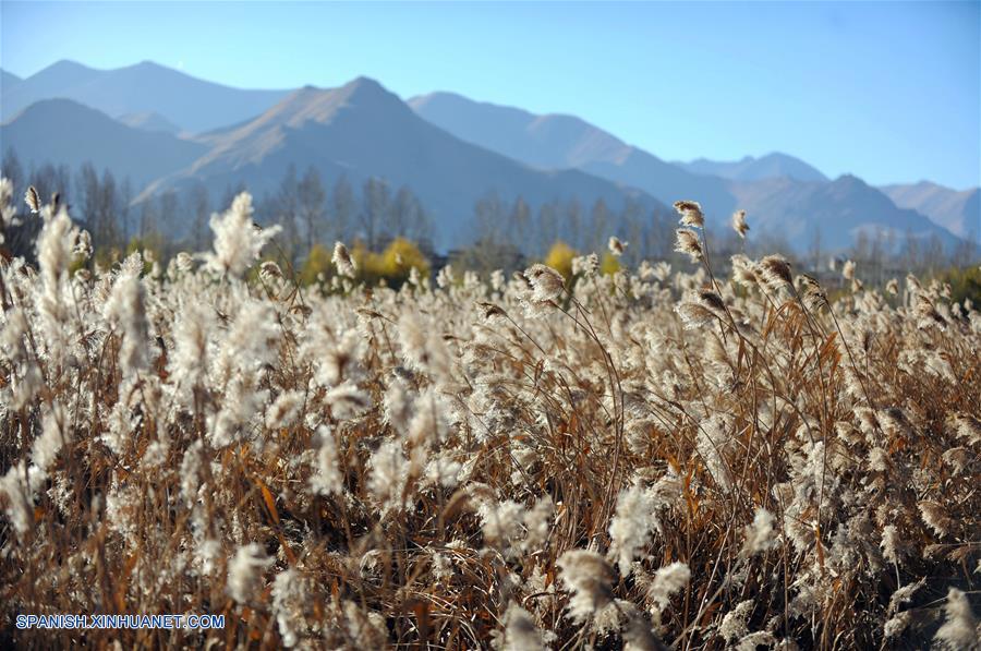 LHASA, noviembre 23, 2017 (Xinhua) -- Vista de los juncos en el humedal Lalu, en Lhasa, en la región autónoma del Tíbet, en el suroeste de China, el 23 de noviembre de 2017. La reserva natural nacional del humedal Lalu, con una altitud de aproximadamente 3,600 metros, cubre un área de cerca de 13 kilómetros cuadrados. Más de 5,000 aves de más de 20 especies habitan en la reserva a lo largo del a?o. En el invierno, docenas de especies de aves migratorias vuelan al humedal. (Xinhua/Jigme Dorje)