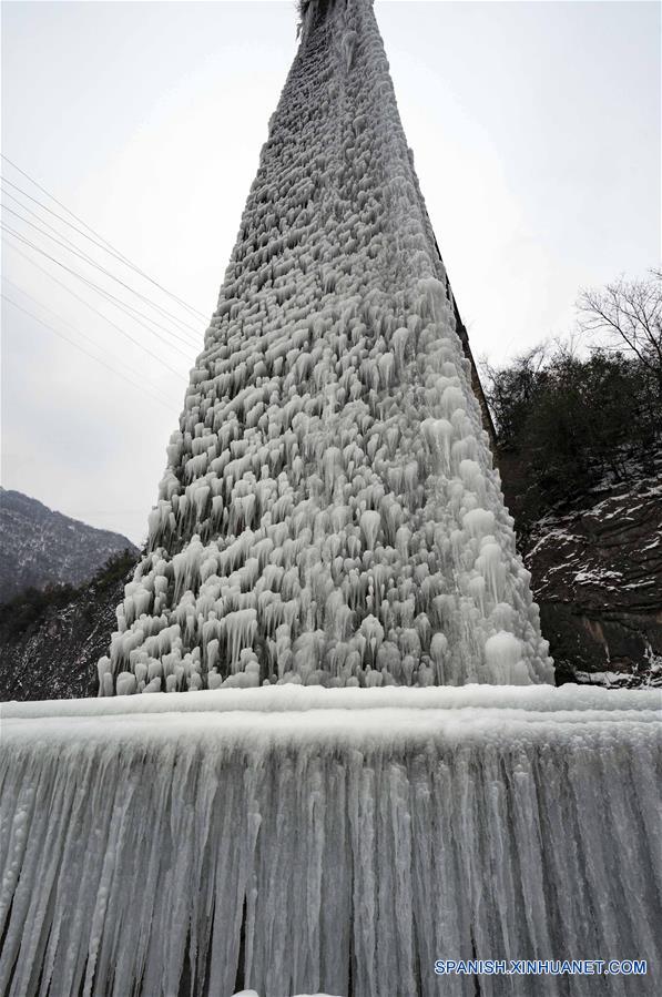 Carámbanos son captados a lo largo de la Autopista Nacional 209 en la villa de Qiaoshang del condado de Fangxian, provincia de Hubei, en el centro de China, el 27 de enero de 2018. (Xinhua/Du Huaju)