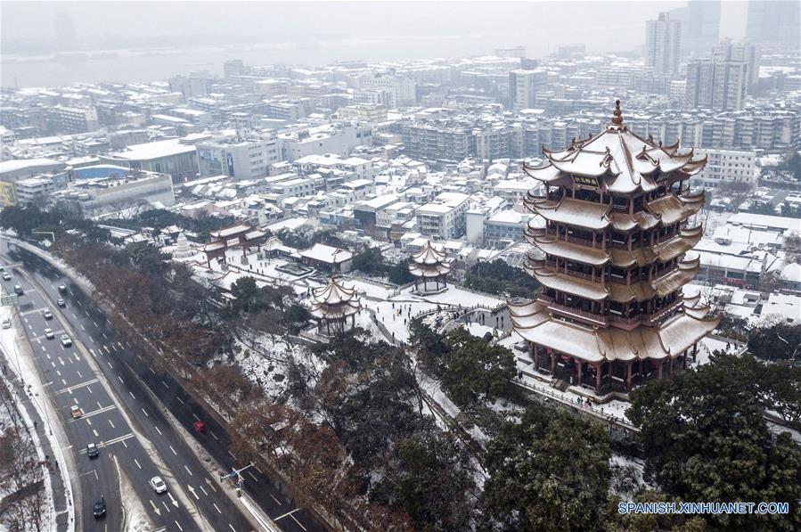 Vista de la Torre de la Grúa Amarilla después de una nevada, en la ciudad de Wuhan, capital de la provincia de Hubei, en el centro de China, el 27 de enero de 2018. (Xinhua/Xiong Qi)