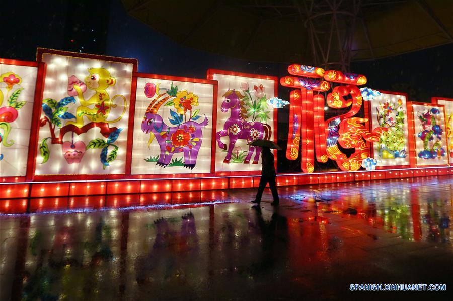 Un visitante recorre el espectáculo de linternas en el parque Nantong Adventure Land, en Nantong, provincia de Jiangsu, en el este de China, el 27 de enero de 2018. El espectáculo de linternas permanecerá hasta marzo de este a?o. (Xinhua/Xu Peiqin)