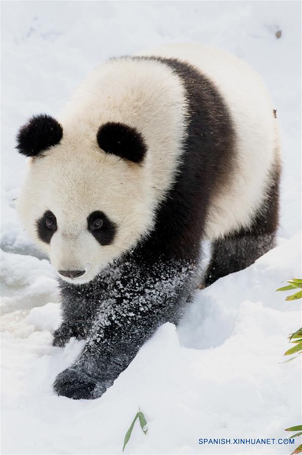 NANJING, enero 29, 2018 (Xinhua) -- Un panda gigante juega con la nieve en el Zoológico Forestal Hongshan, en Nanjing, capital de la provincia de Jiangsu, en el este de China, el 29 de enero de 2018. (Xinhua/Su Yang)