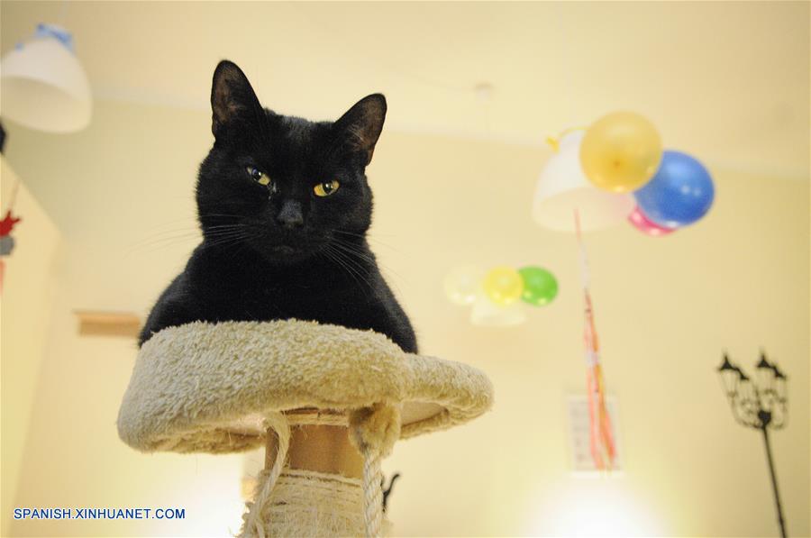 BYDGOSZCZ, enero 30, 2018 (Xinhua) -- Un gato permanece acostado en el primer café para gatos en Bydgoszcz, Polonia, el 30 de enero de 2018. (Xinhua/Jaap Arriens)