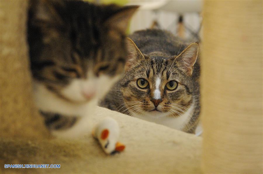 BYDGOSZCZ, enero 30, 2018 (Xinhua) -- Gatos juegan en el primer café para gatos en Bydgoszcz, Polonia, el 30 de enero de 2018. (Xinhua/Jaap Arriens)