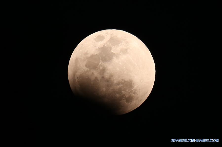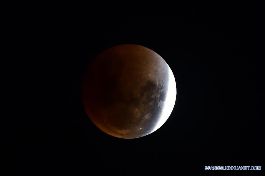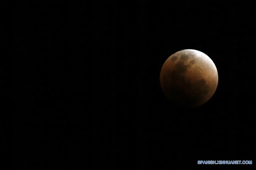 YAKARTA, enero 31, 2018 (Xinhua) -- La luna aparece en el cielo durante un eclipse lunar total, en Yakarta, Indonesia, el 31 de enero de 2018. (Xinhua/Zulkarnain)