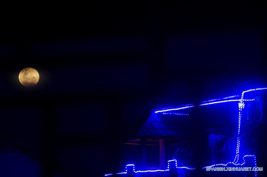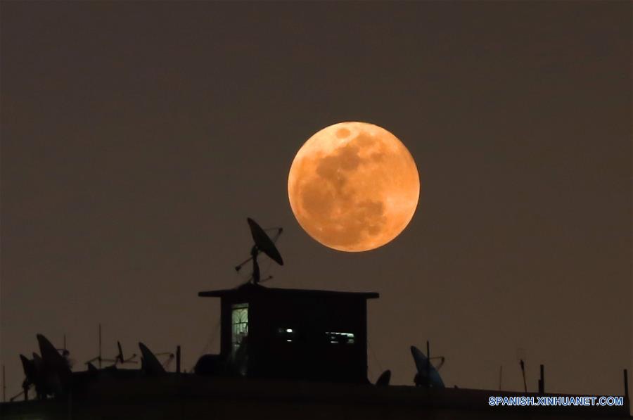 NAY PYI TAW, enero 31, 2018 (Xinhua) -- La "Superluna" aparece en el cielo sobre Nay Pyi Taw, Myanmar, el 31 de enero de 2018. (Xinhua/U Aung)