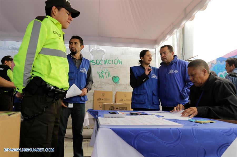 QUITO, febrero 1, 2018 (Xinhua) -- Funcionarios electorales esperan a que personas privadas de la libertad emitan su voto en la consulta popular y referendo, en Quito, capital de Ecuador, el 1 de febrero de 2018. Un total de 8.981 presos sin sentencia condenatoria ejecutoriada ejercieron el jueves de manera anticipada su derecho al voto en la consulta popular y referendo, mientras que el resto de la población lo hará el 4 de febrero. El Consejo Nacional Electoral (CNE) dio a conocer que los presos votan en 40 Centros Penitenciarios correspondientes a 20 provincias del país sudamericano. La consulta y referendo que impulsa el gobierno, incluye siete preguntas que implican enmiendas a artículos de la Constitución y temas de interés colectivo como corrupción, reelección indefinida, plusvalía, naturaleza, minería y delitos sexuales a menores de edad. El consejero del CNE, Paul Salazar, dijo a periodistas que las Juntas Receptoras del Voto están conformadas por representantes y personal administrativo de los Centros Penitenciarios "para garantizar una participación democrática incluyente". La campa?a electoral de cara a la jornada electoral del domingo 4 de febrero terminará a la medianoche del viernes, luego de 30 días de actos proselitistas. (Xinhua/Carlos Rodríguez/ANDES)