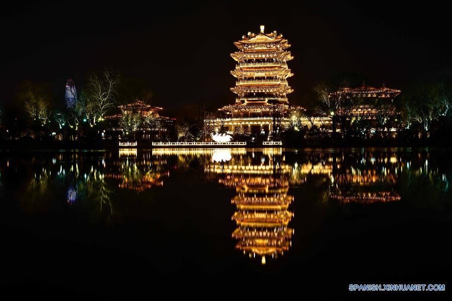 Vista nocturna sobre el Lago Daming, en Jinan, capital de la provincia de Shandong, en el este de China, el 3 de febrero de 2018. (Xinhua/Guo Xulei)
