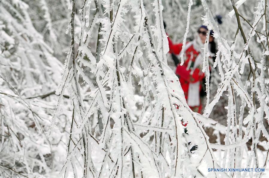 Vista del paisaje escarchado en la monta?a Yunwu en Guiyang, capital de la provincia de Guizhou, en el suroeste de China, el 3 de febrero de 2018. (Xinhua/Qiao Qiming)