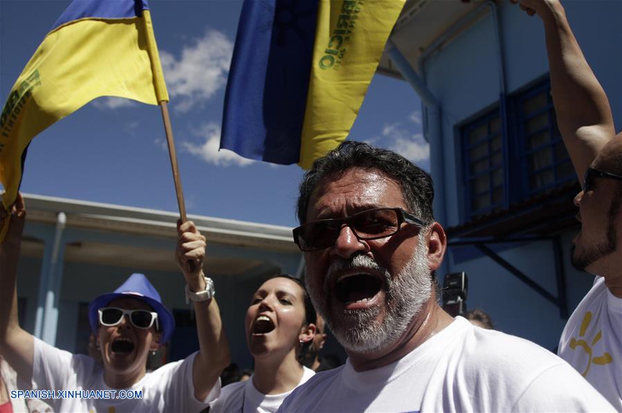 SAN JOSE, febrero 4, 2018 (Xinhua) -- Simpatizantes del candidato a la Presidencia de Costa Rica por el Partido Restauración Nacional (PRN), Fabricio Alvarado, reaccionan durante las elecciones presidenciales, en San José, Costa Rica, el 4 de febrero de 2018. El presidente de Costa Rica, Luis Guillermo Solís, llamó el domingo a los costarricenses a que "expresen la opinión ciudadana" en las urnas, que abrieron desde las 06:00 hora local (12:00 GMT) para que los ciudadanos elijan al nuevo mandatario, dos vicepresidentes y 57 miembros de la Asamblea Legislativa. (Xinhua/Kent Gilbert)