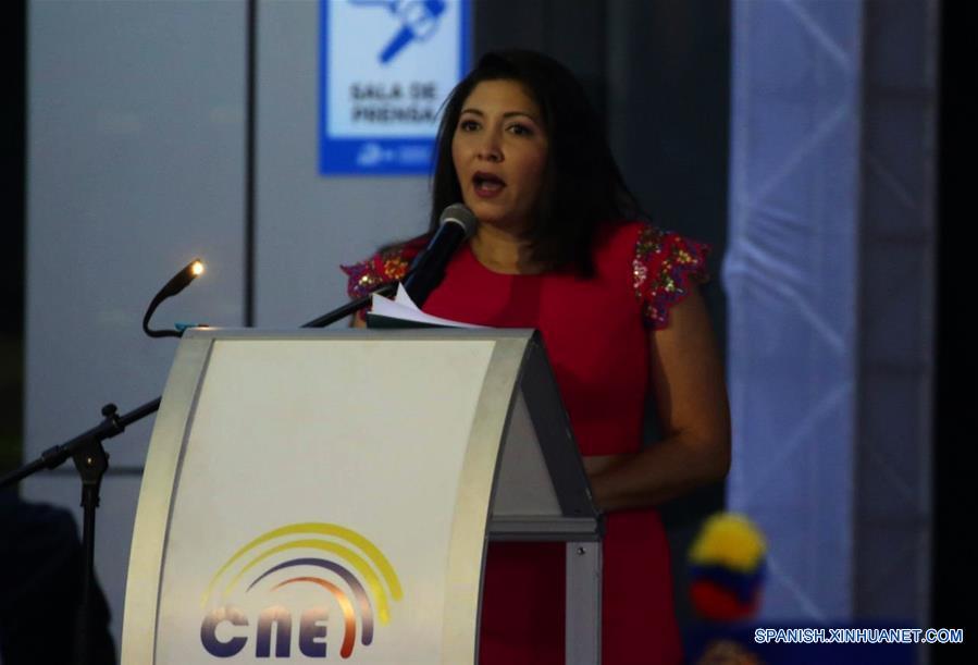 QUITO, febrero 4, 2018 (Xinhua) -- La presidenta del Consejo Nacional Electoral (CNE) de Ecuador, Nubia Villacís, pronuncia un discurso durante un acto de inauguración de la consulta popular y referendo, en la sede del CNE, en Quito, capital de Ecuador, el 4 de febrero de 2018. Los electores ecuatorianos comenzaron el domingo a acudir a las urnas para votar en la consulta popular y referendo impulsados por el presidente, Lenín Moreno, para hacer varias enmiendas a la Constitución con el fin de reforzar la democracia en el país. Los colegios electorales abrieron sus puertas a las 07:00 hora local (12:00 GMT) y permanecerán abiertos hasta las 17:00 hora local (22:00 GMT) cuando se cerrarán para dar paso al proceso de escrutinio. (Xinhua/ANDES)