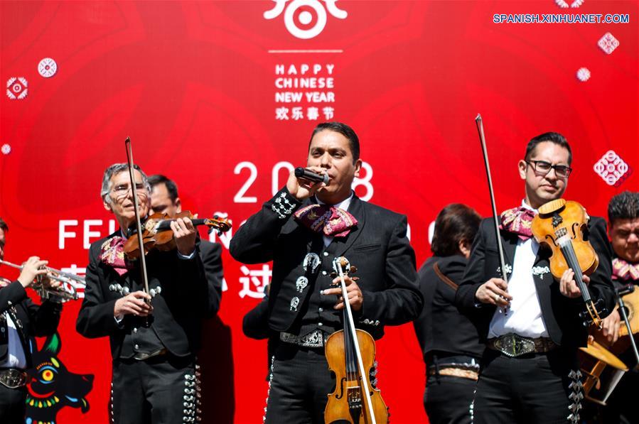 CIUDAD DE MEXICO, febrero 4, 2018 (Xinhua) -- Mariachis participan en los festejos de la Fiesta de Primavera, denominada "A?o Nuevo Chino 2018, A?o del Perro", llevada a cabo en el Centro Cultural de China en México, en la Ciudad de México, capital de México, el 4 de febrero de 2018. (Xinhua/Francisco Ca?edo)