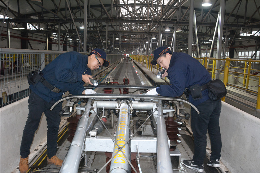 Mecánicos realizan controles de seguridad en la estación de mantenimiento de Chongqing, 24 de enero del 2018. (Foto: Chen Ya)