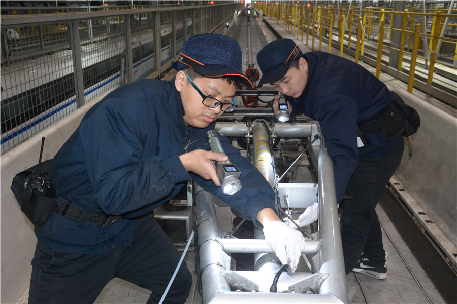 Mecánicos realizan controles de seguridad en la estación de mantenimiento de Chongqing, 24 de enero del 2018. (Foto: Chen Ya)