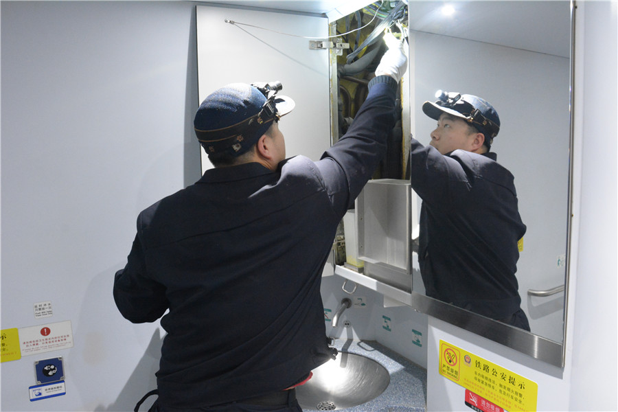 Mecánicos realizan controles de seguridad en la estación de mantenimiento de Chongqing, 24 de enero del 2018. (Foto: Chen Ya)