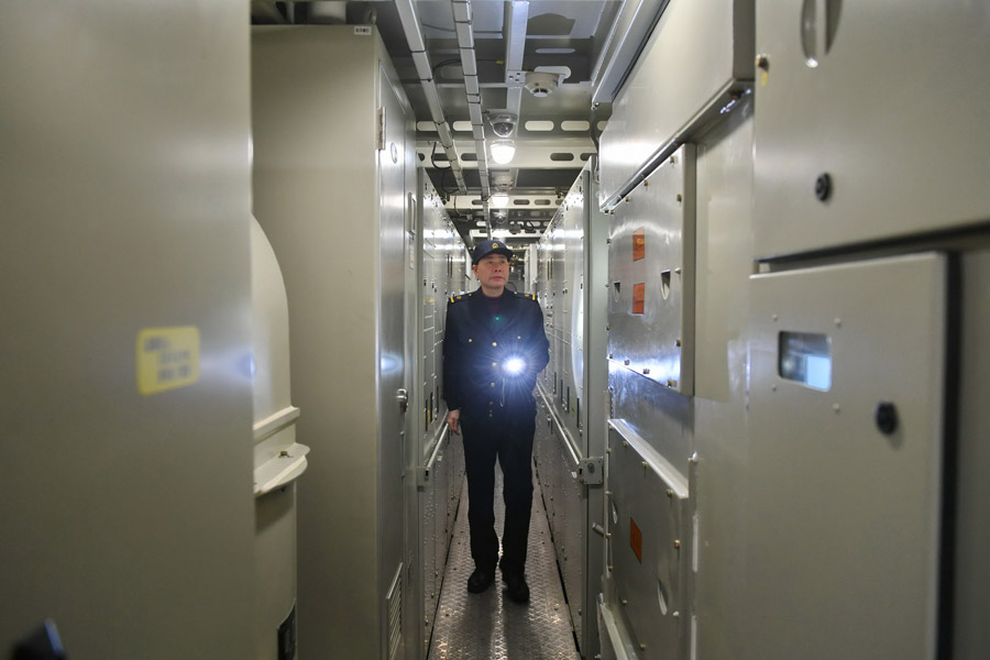 Yu Xiangyang comprueba una locomotora, 31 de enero del 2018. [Foto: Xinhua]