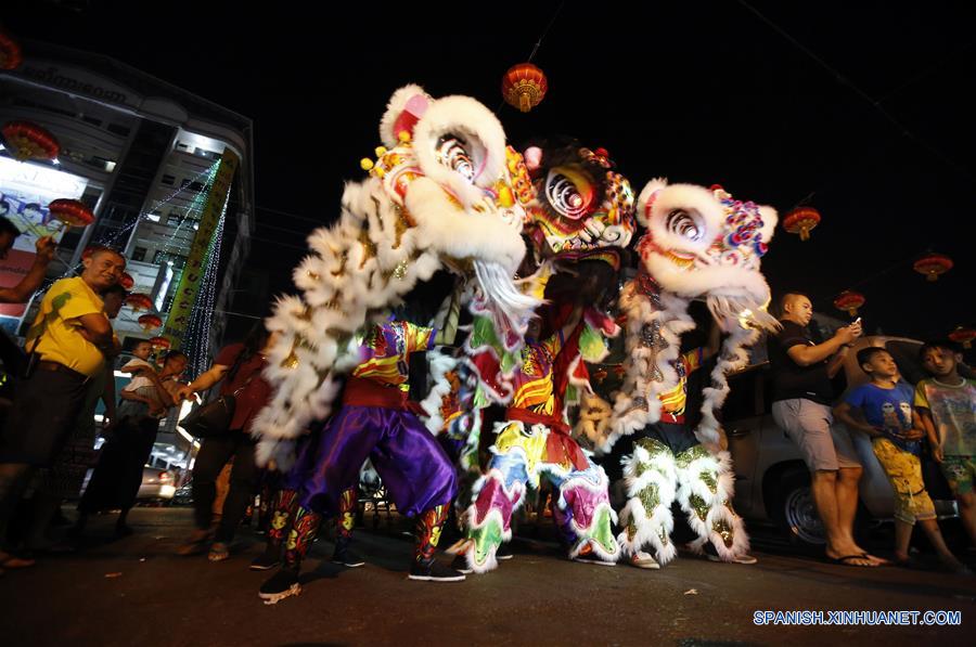 Bailarines interpretan la Danza del León durante una celebración llevada a cabo por el próximo A?o Nuevo Lunar chino, en el Barrio Chino de Yangón, Myanmar, el 6 de febrero de 2018. El A?o Nuevo Lunar chino se celebra el 16 de febrero este a?o. (Xinhua/U Aung)