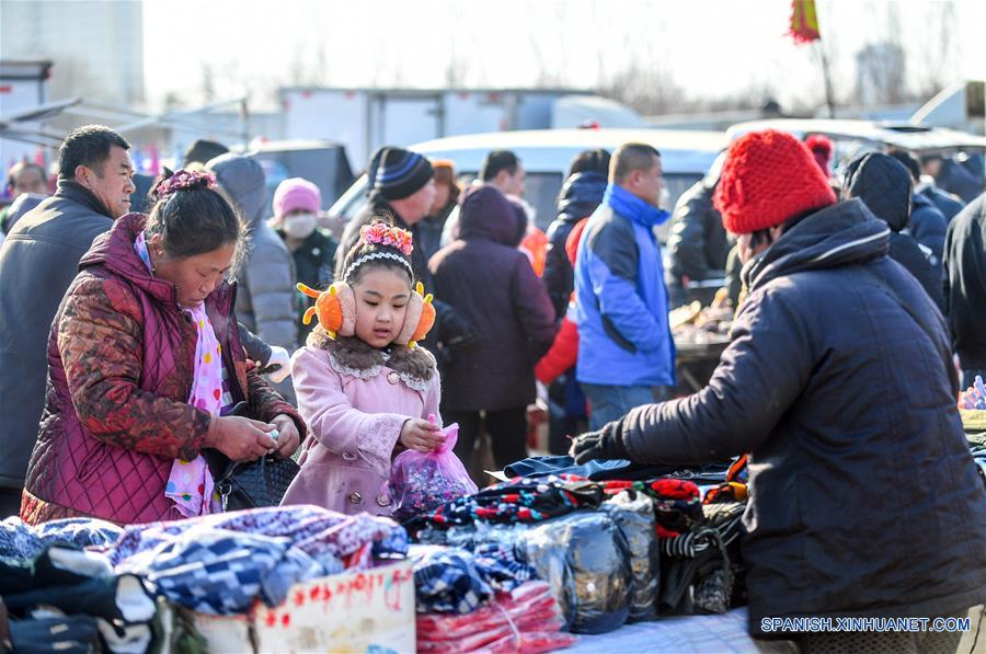 LIAONING, febrero 8, 2018 (Xinhua) -- Personas seleccionan artículos del Festival de Primavera en una gran feria en el día de Xiaonian, en la ciudad de Yingkou, provincia de Liaoning, en el noroeste de China, el 8 de febrero de 2018. Xiaonian, el día 23 o 24 del mes 12 del calendario lunar chino, marca el comienzo de la cuenta regresiva del Festival de Primavera. (Xinhua/Pan Yulong)