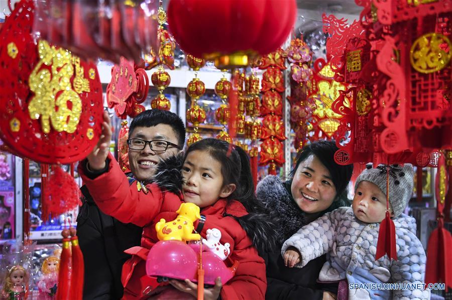 SHAANXI, febrero 8, 2018 (Xinhua) -- Imagen del 7 de febrero de 2018 de personas seleccionando artículos del Festival de Primavera previo al día de Xiaonian, en la ciudad de Yulin, provincia de Shaanxi, en el noroeste de China. Xiaonian, el día 23 o 24 del mes 12 del calendario lunar chino, marca el comienzo de la cuenta regresiva del Festival de Primavera. (Xinhua/Tao Ming)
