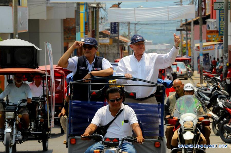 SAN MARTIN, febrero 8, 2018 (Xinhua) -- El presidente peruano, Pedro Pablo Kuczynski (d-arriba), se desplaza en mototaxi hacia el Hospital de Tarapoto, en una calle d Tarapoto, en la región de San Martín, Perú, el 8 de febrero de 2018. El presidente peruano, Pedro Pablo Kuczynski, demandó el jueves a la oposición política que "deje trabajar" a su gobierno, con la finalidad de alcanzar las metas establecidas hasta el final de su gestión. Según el gobernante, quienes se oponen a la labor que desarrolla al frente del gobierno tienen motivaciones políticas y con su actitud obstaculizan los objetivos trazados. (Xinhua/Prensa Presidencia/ANDINA)