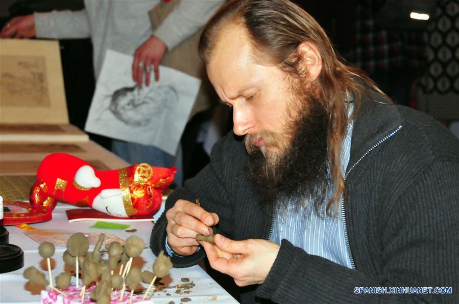 Un hombre elabora esculturas de arcilla durante la celebración del A?o Nuevo Lunar chino llevada a cabo en Riga, Letonia, el 10 de febrero de 2018. Cientos de personas en Riga participaron el sábado en el evento que se llevó a cabo para celebrar el próximo A?o Nuevo Lunar chino. (Xinhua/Janis)