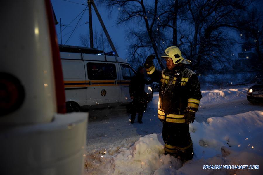 MOSCU, febrero 11, 2018 (Xinhua) -- Un policía trabaja cerca del sitio donde se registró el accidente de una aeronave a las afueras de Moscú, capital de Rusia, el 11 de febrero de 2018. Un avión de pasajeros con 71 personas a bordo se estrelló poco después de despegar de Moscú, sin que existan esperanzas de que hayan sobrevivido los tripulantes y pasajeros, dijo el domingo un funcionario de los servicios de emergencia a la agencia de noticias Interfax. (Xinhua/Evgeny Sinitsyn)