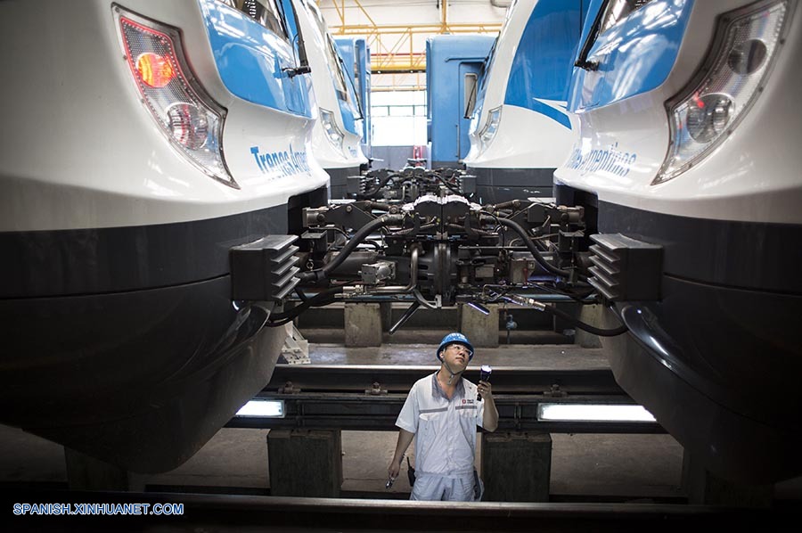 Imagen del 11 de abril de 2017 de un técnico de la compa?ía ferroviaria china CRRC Sifang trabajando en un tren estacionado para su revisión en los talleres de la Línea Roca, en la localidad de Llavallol, Argentina.(Xinhua/Martín Zabala)