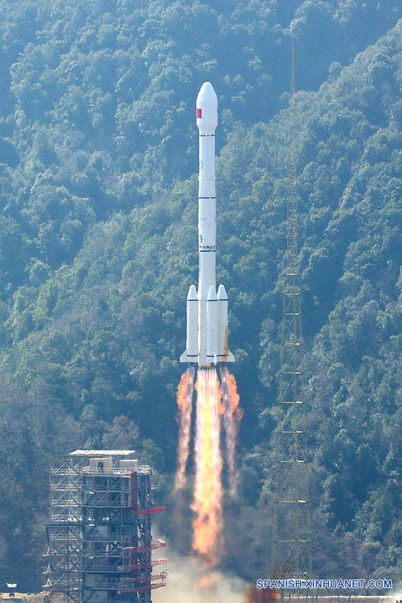 XICHANG, Sichuan, 12 feb (Xinhua) -- China lanzó hoy lunes dos satélites gemelos hacia su órbita en un solo cohete portador para su propio Sistema de Satélites de Navegación BeiDou.