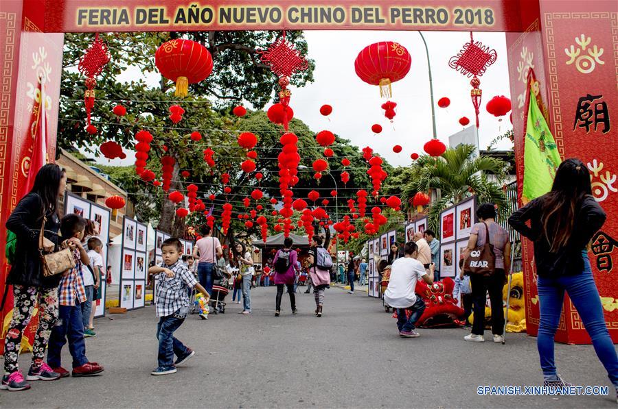 Personas asisten a un evento para celebrar el A?o Nuevo Lunar chino, en el municipio de Chacao, Caracas, Venezuela, el 18 de febrero de 2018. El evento, encabezado por el embajador de China en Venezuela, Li Baorong, exhibió platillos típicos, vestimenta tradicional y presentaciones artísticas de China. De acuerdo con la tradición china, el A?o Nuevo chino inició el 16 de febrero este a?o, y está dedicado al "Perro de Tierra", animal que significa carisma y bondad.(Xinhua/Boris Vergara)